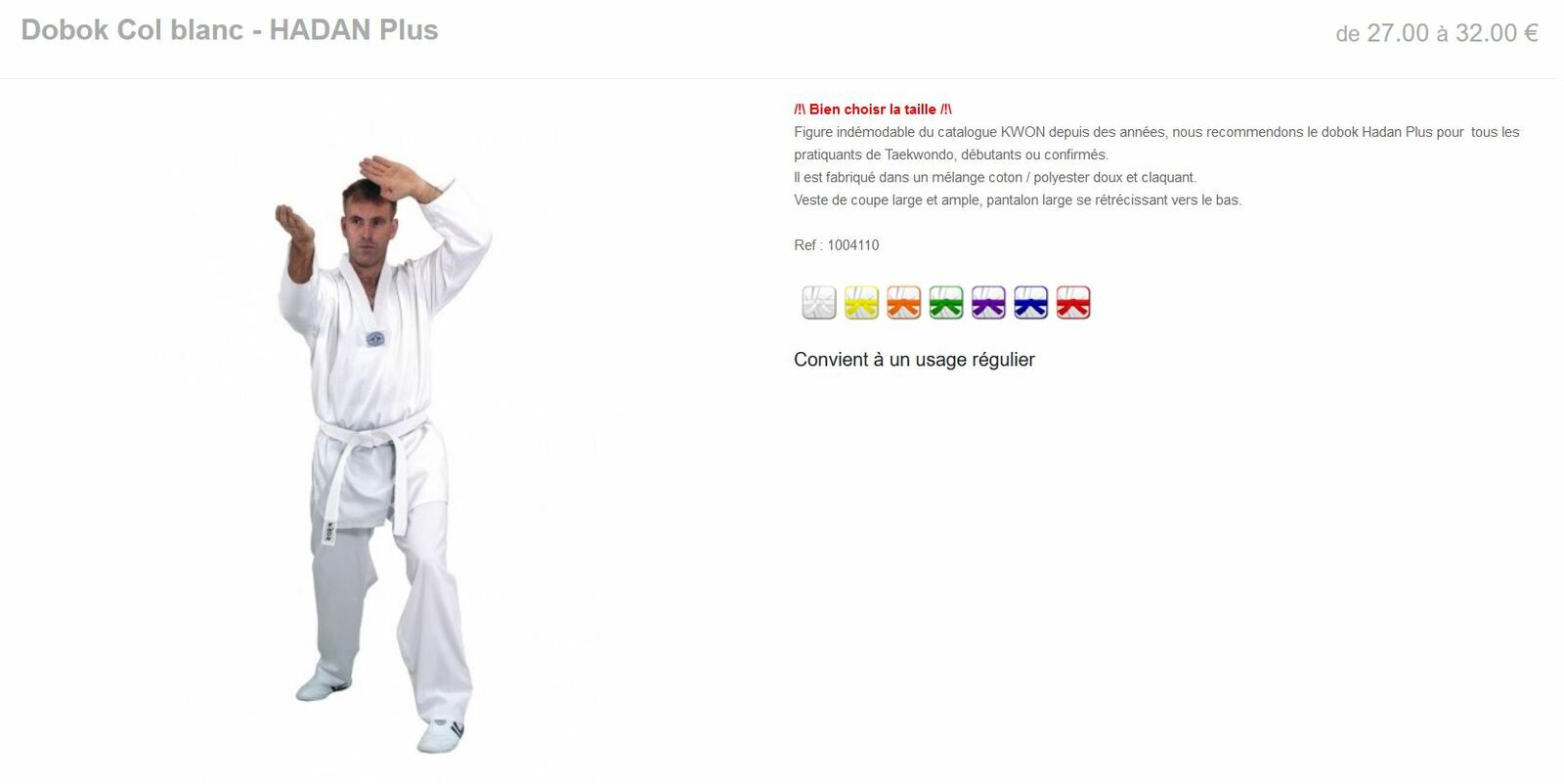 Dobok Col blanc - HADAN Plus